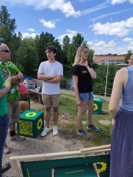 Für uns Herzogenrather*Innen stand nach der schönen Radtour, dann nicht nur unser Bundestagskandidat Lukas Benner mit Liegestühlen, Apfelschorle und co. für Fragen und Anregungen zur Verfügung, sondern auch unsere Landtagskandidatin Laura Polz, welche uns auch beim aktiven Radeln unterstützt hat.