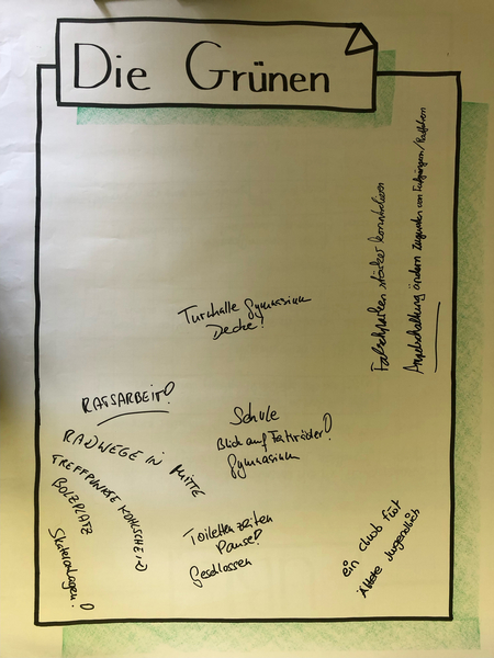 Was bei allen Fraktionen an erster Stelle steht, ist der Wunsch nach geeigneten, trockenen Plätzen für Treffpunkte der Jugendlichen. Oft sind sie da, wo sie sich derzeit treffen, nicht erwünscht.
