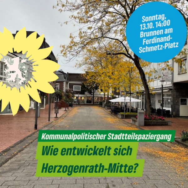 Auf unserer Tour werden wir uns unter anderem den Ferdinand-Schmetz-Platz und seine Umgebung (Innenstadtentwicklung, Verkehrssituation, Wurmpromenade) aus der kommunalpolitischen Brille ansehen. Die Burg, das Bahnhofsumfeld sowie der Weiher und seine Umgebung (Broichbachtal, barrierearme Wege, altes Hallenbad, Fitnessgeräte) werden weitere Stationen auf unserem Spaziergang sein. Falls ihr nachher noch Lust auf ein gemeinsames Eis oder ein Getränk habt, freuen wir uns, die Zeit mit euch zu verbringen. Treffpunkt ist um 14 Uhr am Brunnen auf dem Ferdinand-Schmetz-Platz.