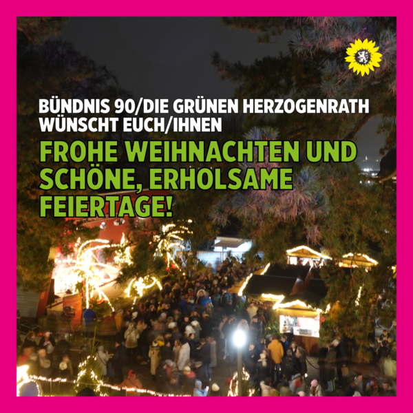 Die Herzogenrather Grünen wünschen euch/Ihnen ein frohes Weihnachtsfest, schöne, erholsame Feiertage und etwas Entschleunigung zum Ende des Jahres 2025. An dieser Stelle möchten wir die Gelegenheit und auch dieses Bild nutzen, um wieder den Verantwortlichen rund um die Kulturbeauftragte der Stadt Nadine Schwartz sowie allen Ehrenamtlichen und Budenbetreibern herzlich zu danken, die dieses Jahr die Burgweihnacht wieder möglich gemacht haben. Es war wirklich schön!